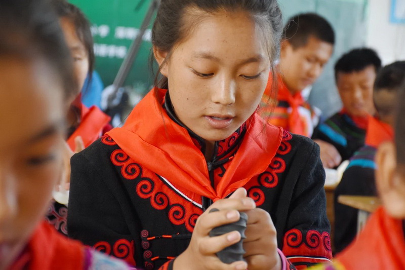 Art teacher Wang Li brought colorful clay for teaching.