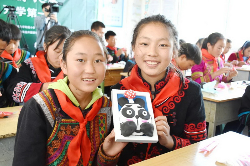 在王老师细心和耐心的指导下,一件件充满童真与创意的熊猫黏土作品“新鲜出炉”。