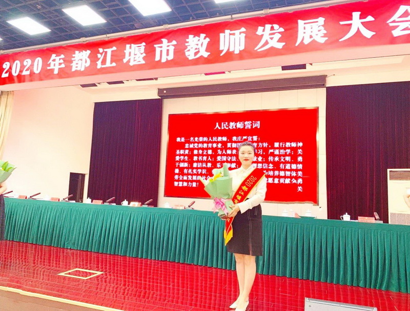 Jia Tingting won the honorary title of "Dujiangyan famous headmaster"