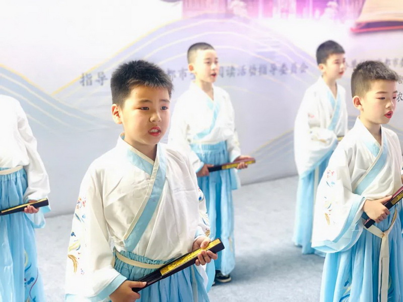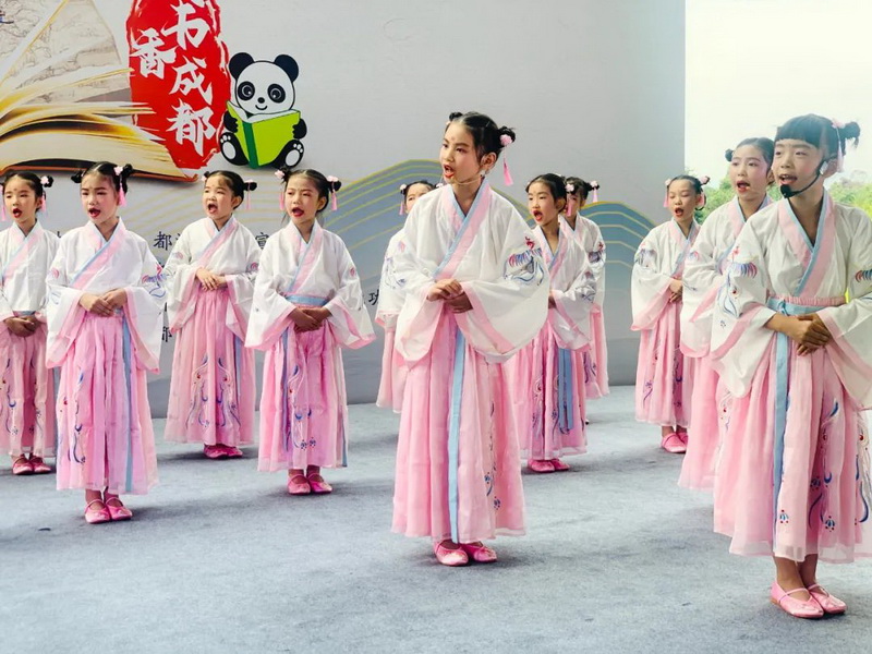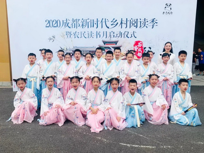 Poems and books are in the belly, and the most scholarly can reach far.In the process of advancing comprehensive reading, Chengdu has spread the scholarly culture to every corner of the city and even the countryside, providing a powerful spiritual motivation and cultural nourishment for accelerating the construction of a world-renowned cultural city.On the morning of September 8, 2020, under the guidance of the Chengdu National Reading Activity Steering Committee and hosted by the Propaganda Department of the Chengdu Municipal Committee, the "2020 Chengdu New Era Rural Reading Season and Farmer Reading Month Launch Ceremony" was officially held in Dujiangyan Irrigation District.Our school teacher Yang Fengjuan led a group of third-grade children dressed in glamorous costumes, with strong Sichuan accents and full of charm to recite a song "Qingcheng Ballad" to kick off the event.Ms Yang and the children chanted loudly, which aroused rounds of applause and received high praise from everyone!