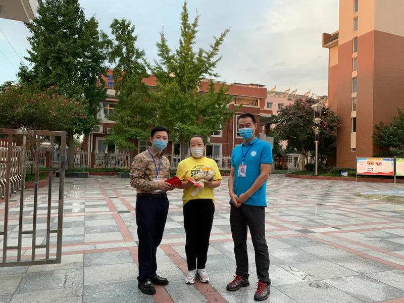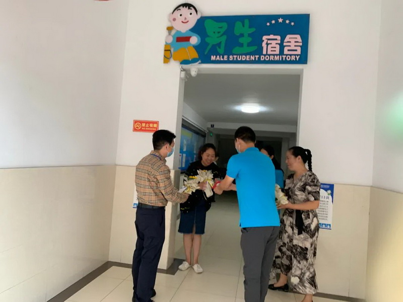 In the morning of September 10, when the sun was shining, Principal Ma came to the school, waiting for the arrival of the teachers. A bunch of flowers, a red envelope, but also a sincere blessing!
