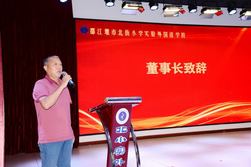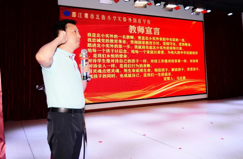 “我是北小实外的一名教师,更是北小实外家庭中光荣的一员。踏进北小实外的第一步,我就肩负起北小实外的荣辱兴衰……”马校长带领全体教职工诵读誓词。