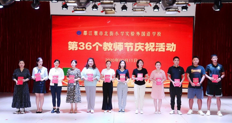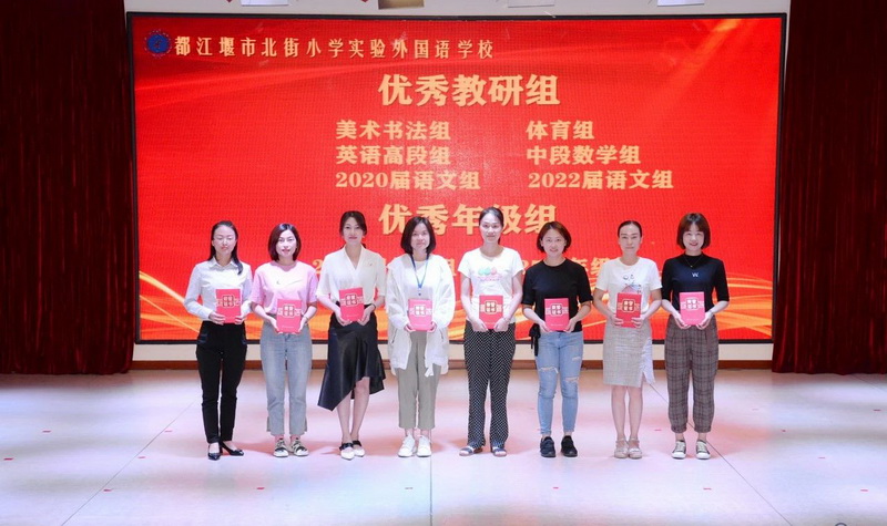 Then, the school commended Chengdu City, Dujiangyan City, school-level excellent faculty, excellent head teacher, excellent deputy head teacher, excellent teaching and research group, excellent grade group, paper achievement, and teaching quality award in the school year 2019-2020.