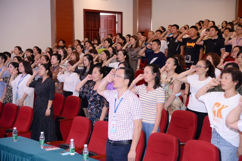 “ I am a teacher of Beijie Experimental Foreign Language School, and a member of it. As soon as I took the first step into the school, I was responsible of the honor and disgrace, the rise and fall of it …”President Ma led all the faculty and staff to read the oath.