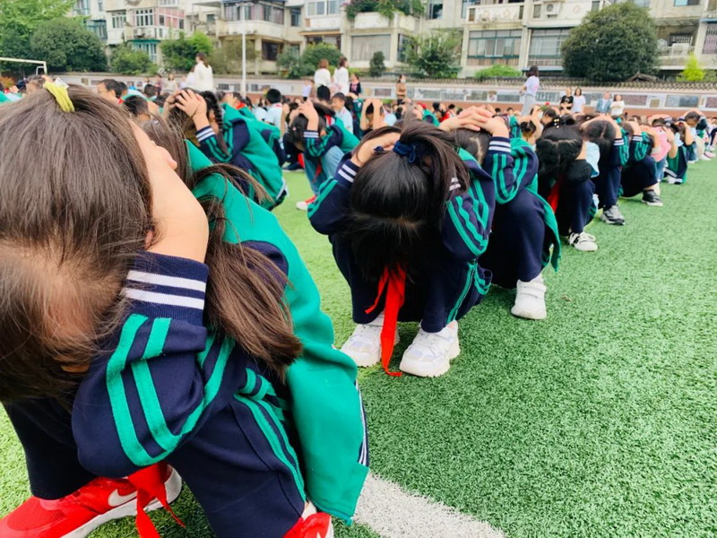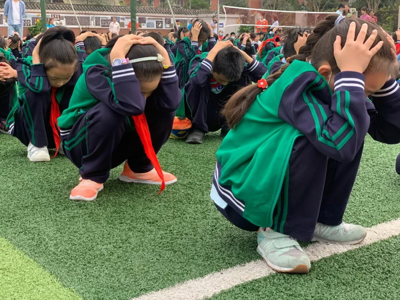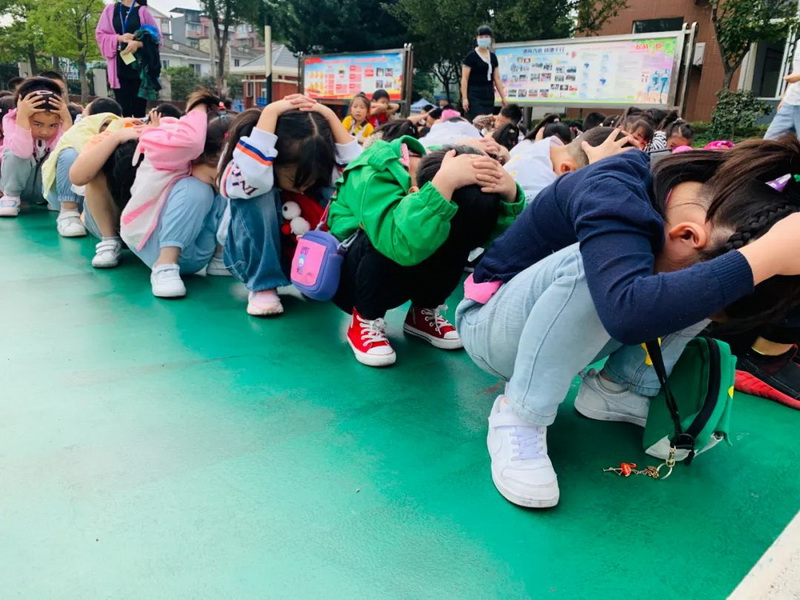 The teachers and students entered the air defense drill preparation state, and the grid duty teachers were in place quickly.