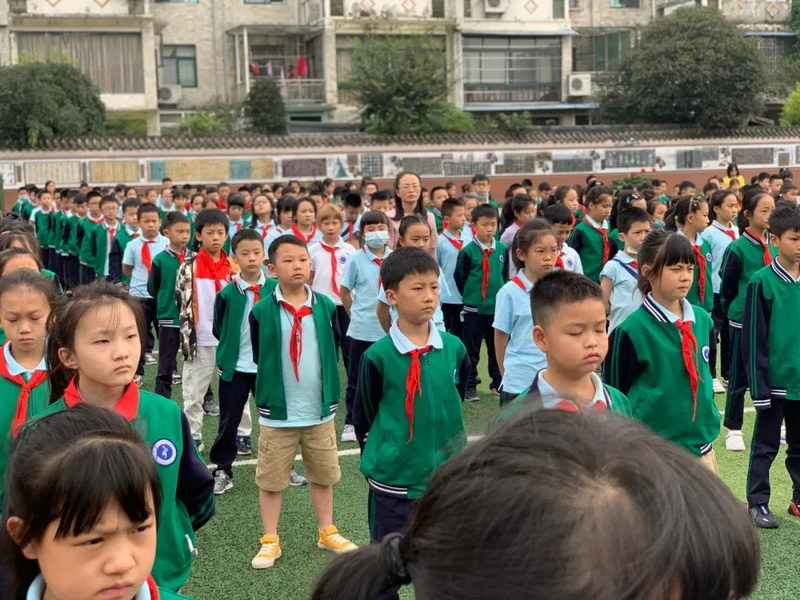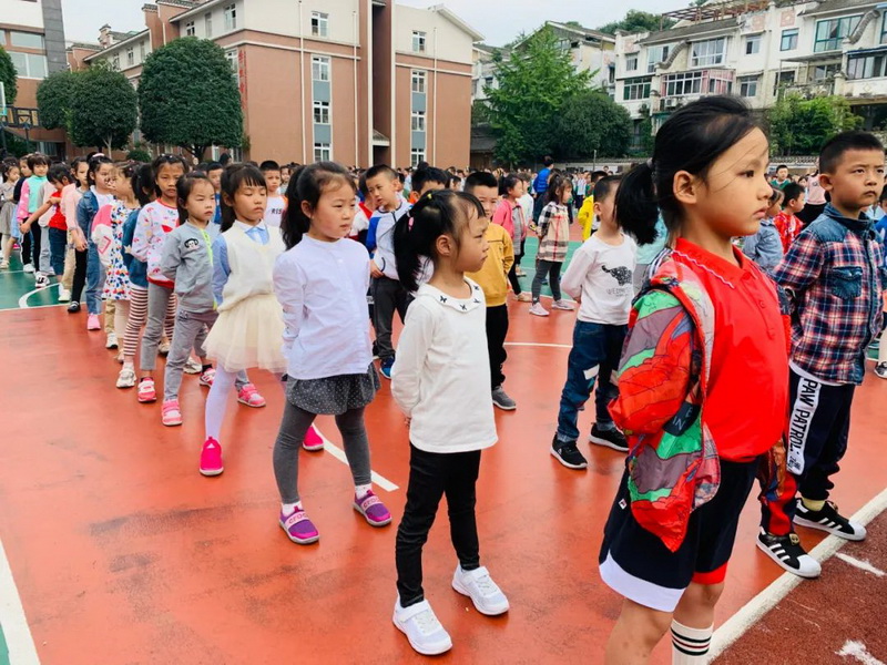 The pre alarm sounded, and the students of each class arrived at the playground "quietly, orderly and quickly" under the guidance of the head teacher and the deputy head teacher.