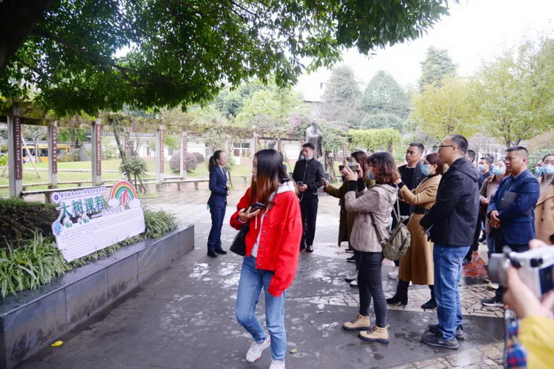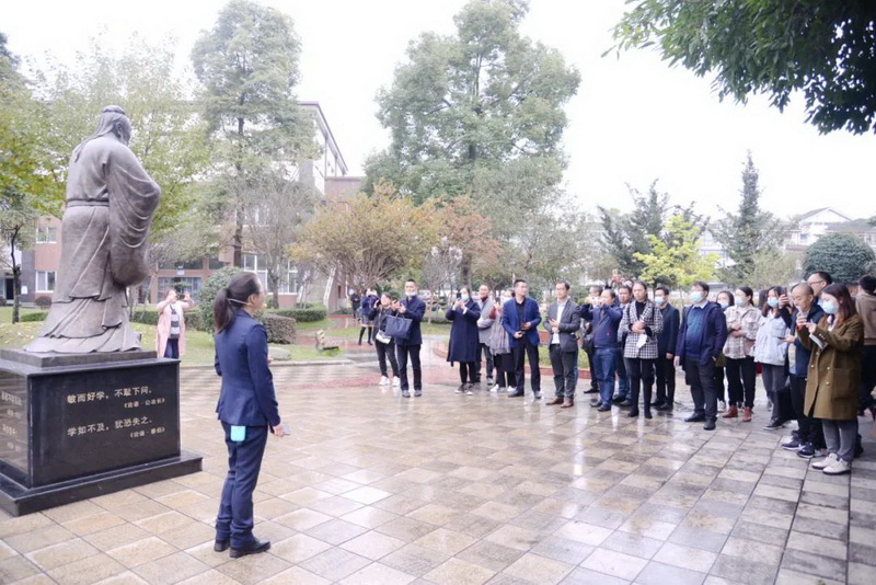 Underthe guidance of Teacher Ai Xiaohong, the guests visited the campus. They weredeeply impressed by the beautiful campus environment and unique campus culture,especially the 100-meter calligraphy wall, the back garden with Confuciancultural characteristics, and the aesthetic education environment and culture.