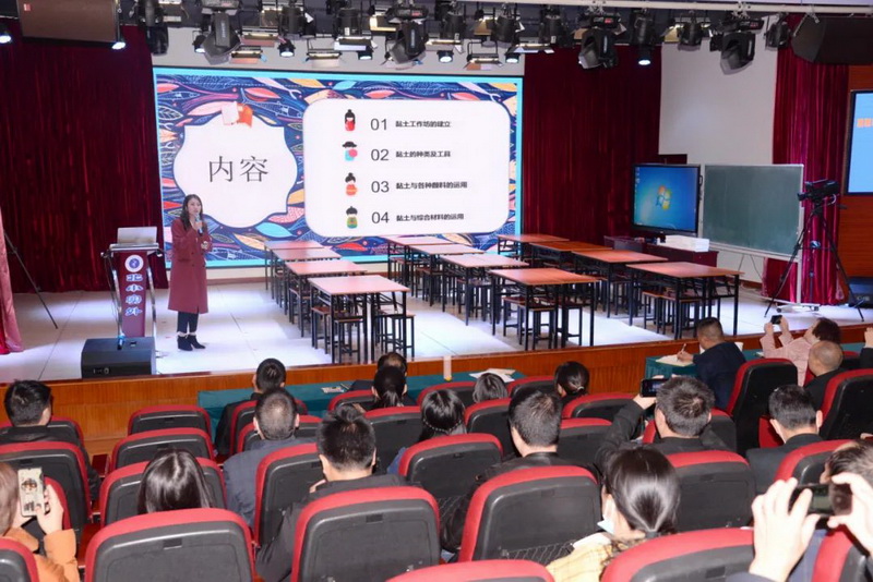 Inthe academic hall, Wang Li Shared the teaching of special clay. She explained in detail the establishment of clay workshop,the kinds and tools of clay, the application of clay and various pigments, theapplication of clay and comprehensive materials, etc. At last, the teacherswatched Wang Li's micro class and tried to make cartoon head pictures bythemselves. During the process of making clay, the teachers learned about thecharacteristics of clay and experienced the fun of clay handwork.