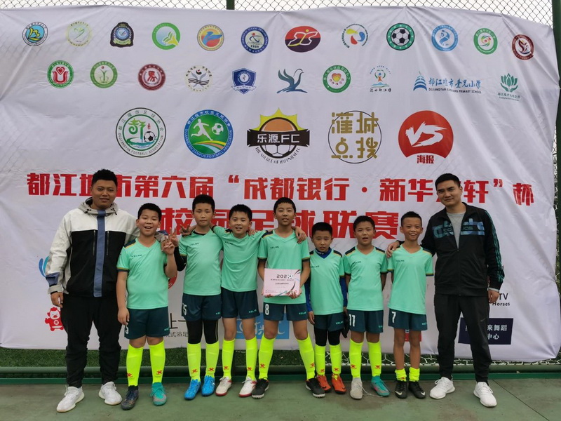 On October 23, 2020, with a loud whistle sounded on the green field, the sixth"Chengdu Bank" of our city. The "New Huaxuan Cup" campus football League started on time. As a characteristic school of campus football in Dujiangyan city and a traditional school of football in Chengdu, our school took an active part in this competition. In this competition, our school sentteams aged 10 and 11 to participate in the competition. After two weeks ofintense struggle, excellent results were achieved.