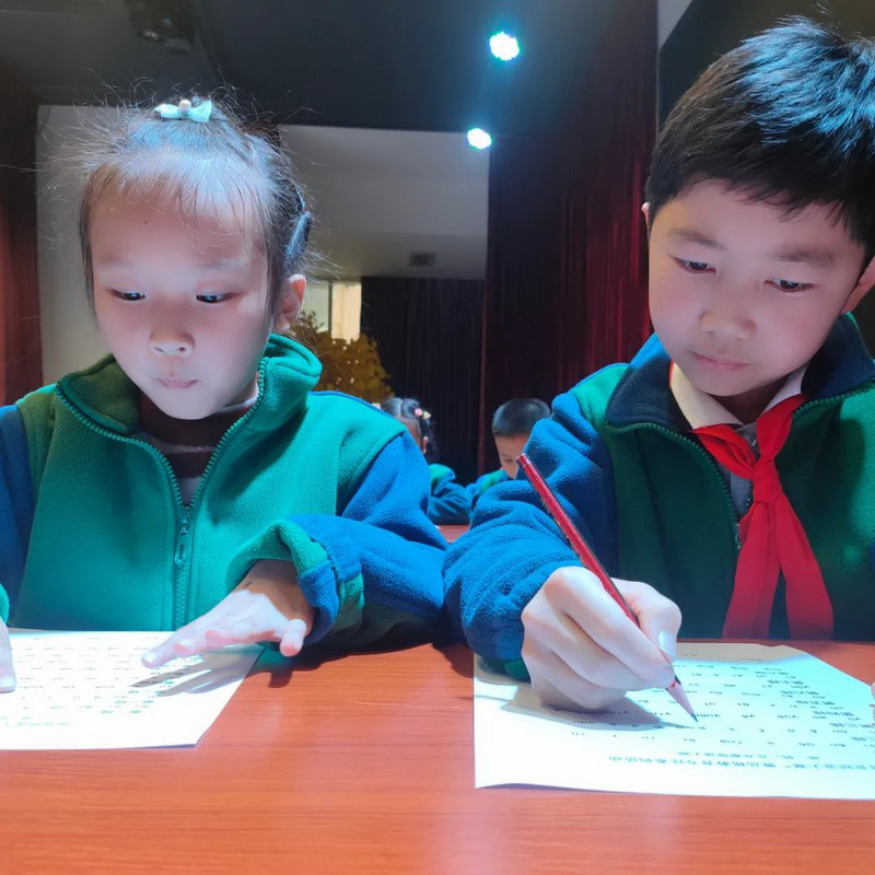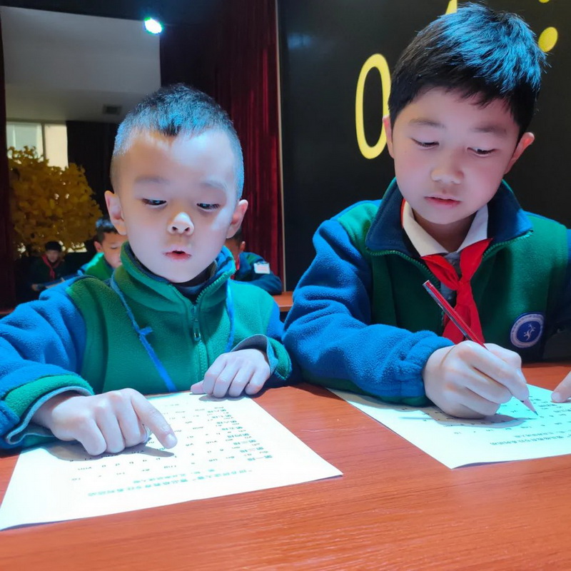 赛前,一年级各班通过初赛选出四名同学参加决赛。瞧,初赛的精彩瞬间。Before the competition, four students from each class of grade one were selected to participate in the final. Look, it's a great moment in the preliminaries.