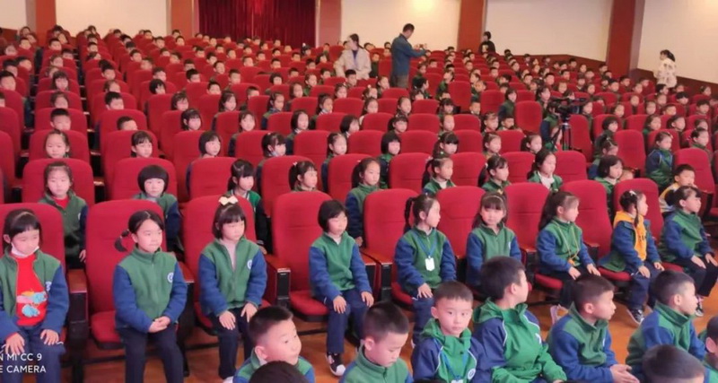 舞台下,小观众们全神贯注。Off the stage, the small audience was engrossed.