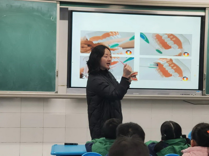 1.2 Class Chen Houming's mother entered the class as an oral cavity doctor. Starting from baby teeth, she let the children know how to protect their teeth and emphasized the correct way to brush their teeth.