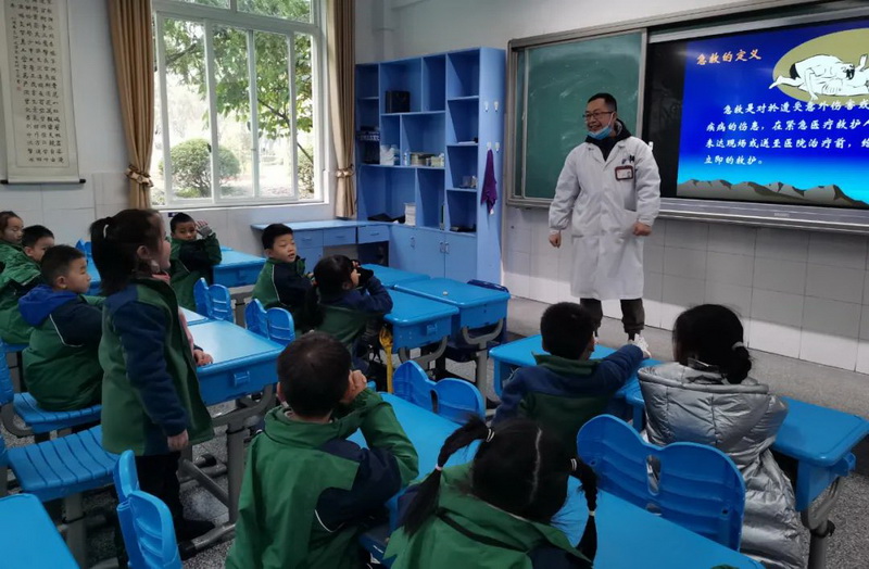 1.5 Class Xu Peinan's father and uncle, as medical workers, brought us a practical first aid knowledge class for primary school students.