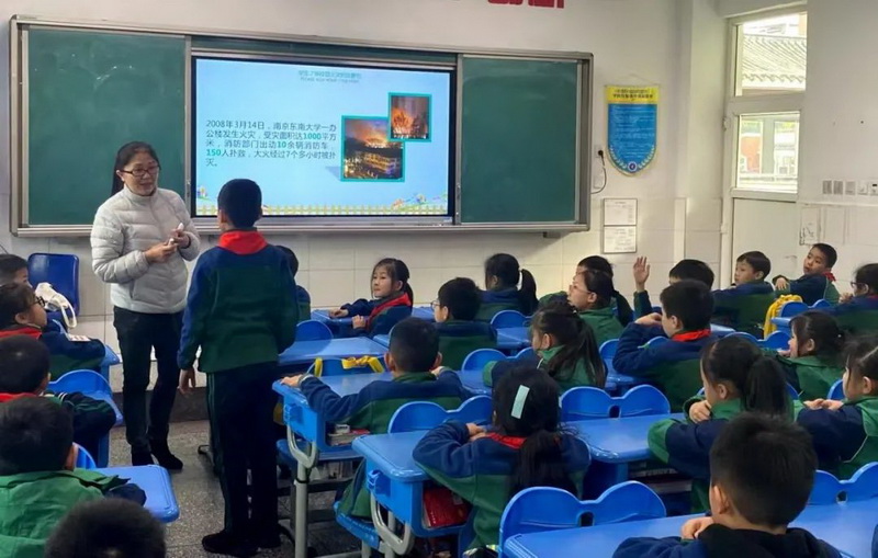 3.1 Class Jiang Peiyao's gradmother in the fire safety publicity month, brought the children "primary school safety knowledge", so that the children can improve their awareness of fire safety, and the alarm bell will ring forever!