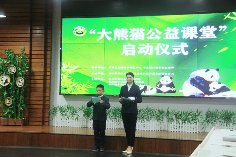 Liu Tingting, deputy director of theDujiangyan Network Security and Information Management Center, announced thelaunch of the Giant Panda Charity Class.