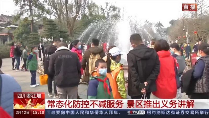 On February 12, 2021, thefirst day of the Xin Chou Year of the Ox-the Spring Festival, touristvolunteers from Guanzhou Primary School are on CCTV News! On this day, whenpeople all over the country are celebrating the Spring Festival and familyreunion in various ways, The 39 tourist volunteers of the school gave up thegood time of reunion with their families, used special methods to practicelabor, responsibility, and responsibility with practical actions, and made duecontributions to the construction of Dujiangyan as an ecological internationaltourist city!