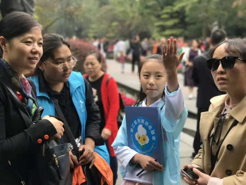 Since the school started to establish avolunteer team in 2017, the team has grown year by year and the project hascontinued to expand. Now it has built a tourist volunteer team for GuanzhouPrimary School, a volunteer team for giant panda culture, and a volunteer teamfor Red Scarf, covering students different ages. The volunteer team has becomea beautiful scenery of the school and a shining business card of the school!