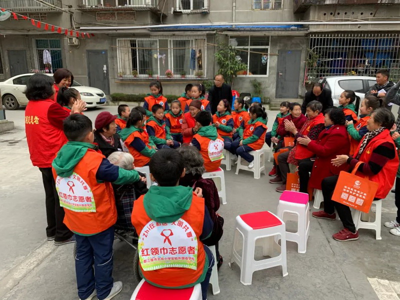 In order to give children more opportunities for exercise and practice stage, the school established RedScarf Cultural Volunteers. Adhering to the volunteer spirit of Fengxian,friendship, mutual help and progress, the young pioneers have carried outvarious red scarf cultural voluntary services on campus, especially playing animportant role in the establishment of the Chengdu City Education Internationalization Window School. Friends from Canada and other countries around the worldexplained campus culture and promoted the high-quality development of the school.