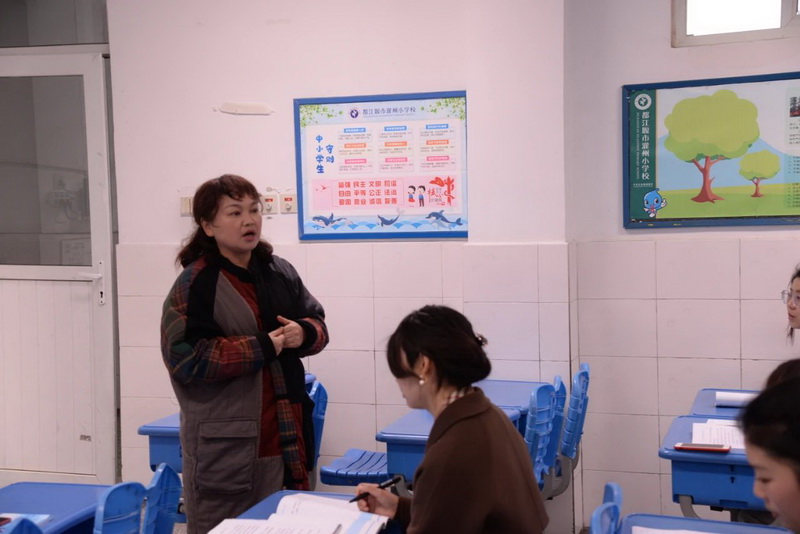 语文大组长伍建强老师主持语文组会议,任红老师担任1-3年级语文老师工作计划评委,吴鸿雁老师担任4-6年级语文工作计划评委。