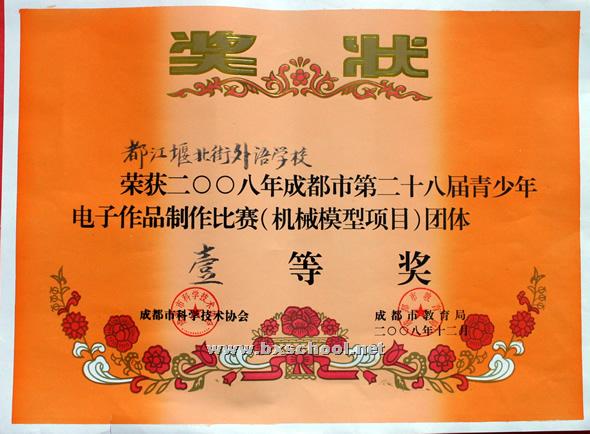 学校荣获机械模型团体一等奖、电子制作团体三等奖、综合团体二等奖。