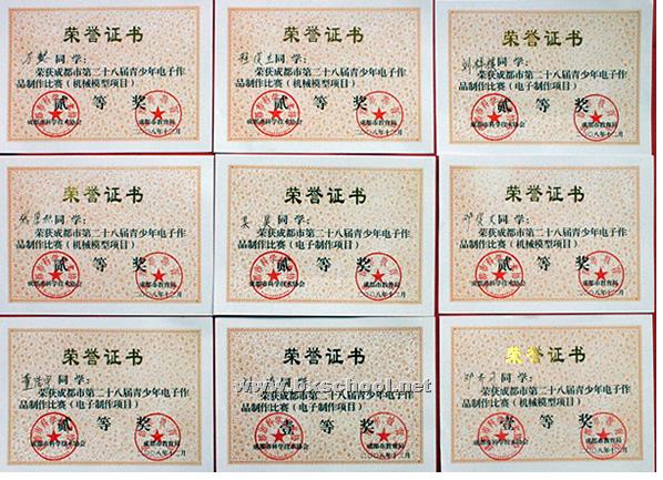 我校在10月份组队参加成都市第28届电子制作大赛,共有400多人积极参加,经过激烈的角逐,共有40多位同学分获成都市一、二、三等奖。