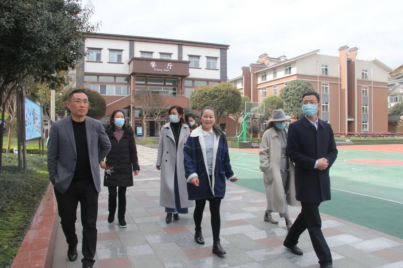 The visiting leaders included Zhang Shoujun, deputy director of Dujiangyan Education Bureau, Yu Yang,deputy director of Dujiangyan Education Bureau, Wang Qin, etc. They visited the playground, the back garden, the dining room, the teaching building and other places, and then they made a detailed inspection and inquiry on the epidemic prevention and control, the hygiene of dining room, the potential safety and other problems in our school. They fully affirmed our school's preparation for the new semester and the epidemic prevention and control work, and guided our school's curriculum and students catering work.