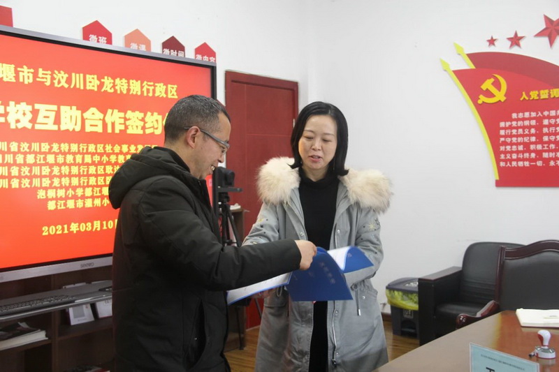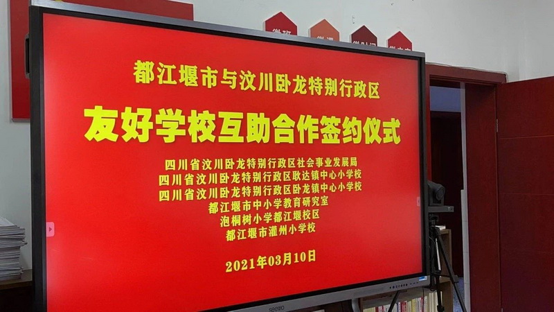 2021年3月10日,四川省卧龙特别行政区学校与泡桐树小学都江堰市校区和我校举行了友好学校签约仪式。