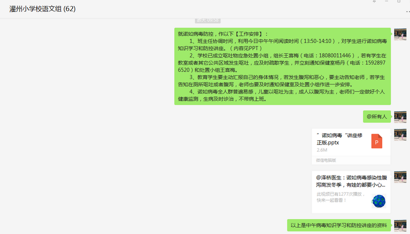 一、各班级开展诺如病毒防控知识讲座。