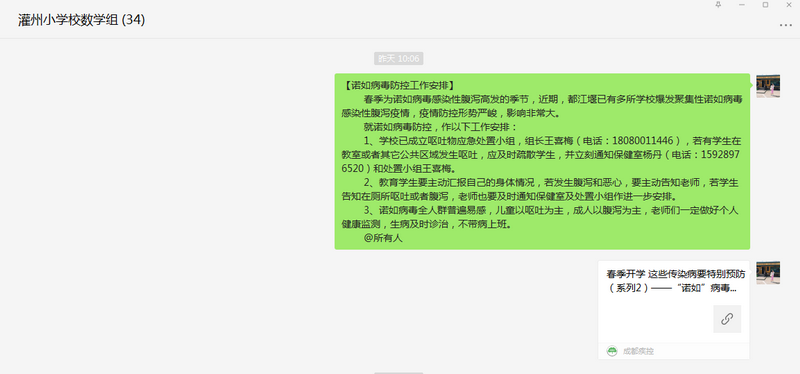 二、发布诺如病毒防控知识,同时向家长普及、宣传防控措施。