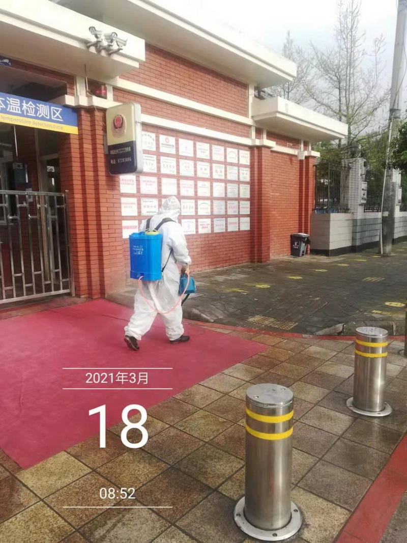 We insist on disinfection. Our school always insists on disinfection of effervescent tablets in classrooms and dormitories every day.Since the outbreak began, the school gates and public areas have been disinfected daily with chlorine-containing disinfectants.Students insist on daily ultraviolet disinfection of all classrooms after school, the disinfection work will be put into practice.
