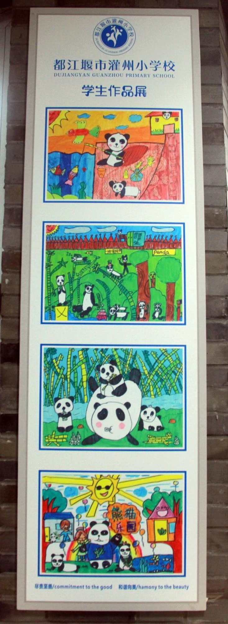 此次活动中,都江堰市灌州小学还展出了学生们关于大熊猫的艺术作品,包括绘画和泥塑等,用不同的艺术形式,表达了对大熊猫的喜爱,受到与会嘉宾的赞扬。都江堰市灌州小学也会继续在以大熊猫为主题的国际性课程中继续探索研究,为了大熊猫的保护与科普继续努力!