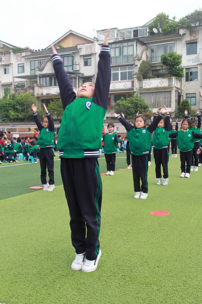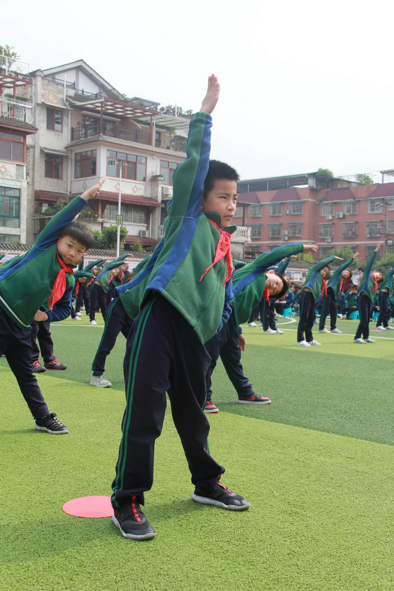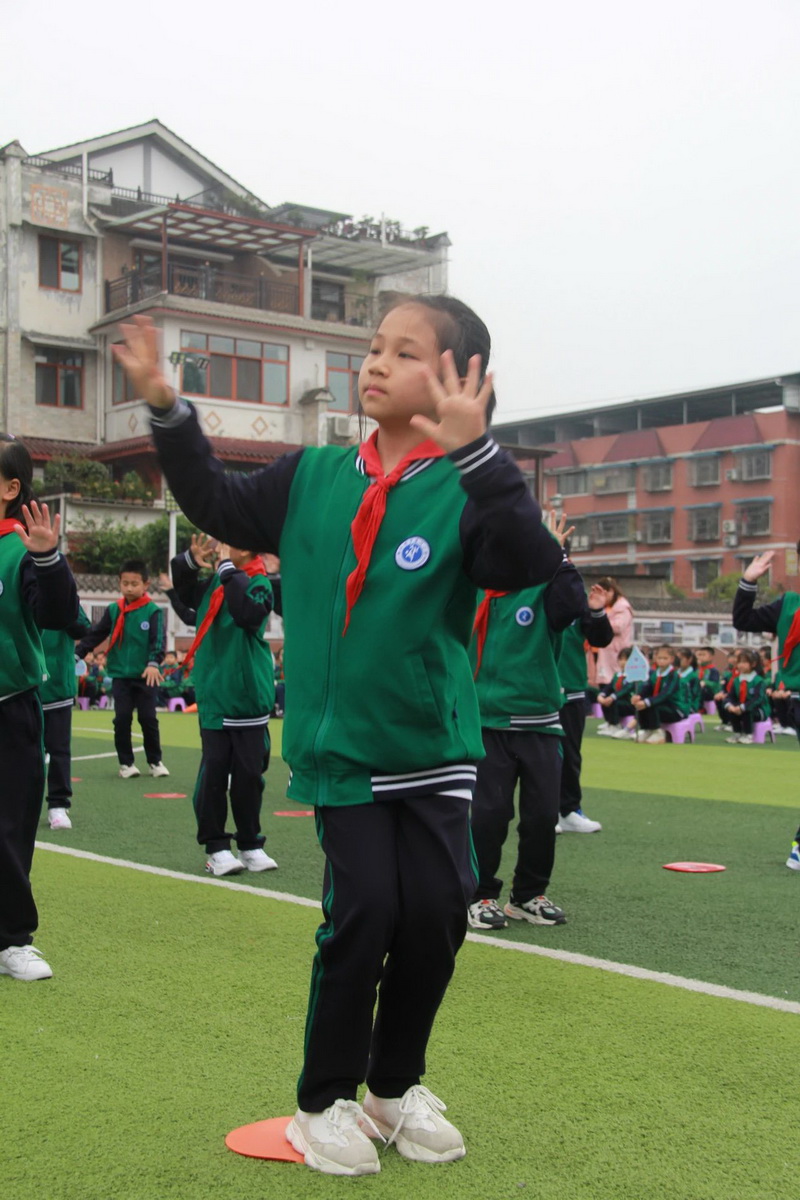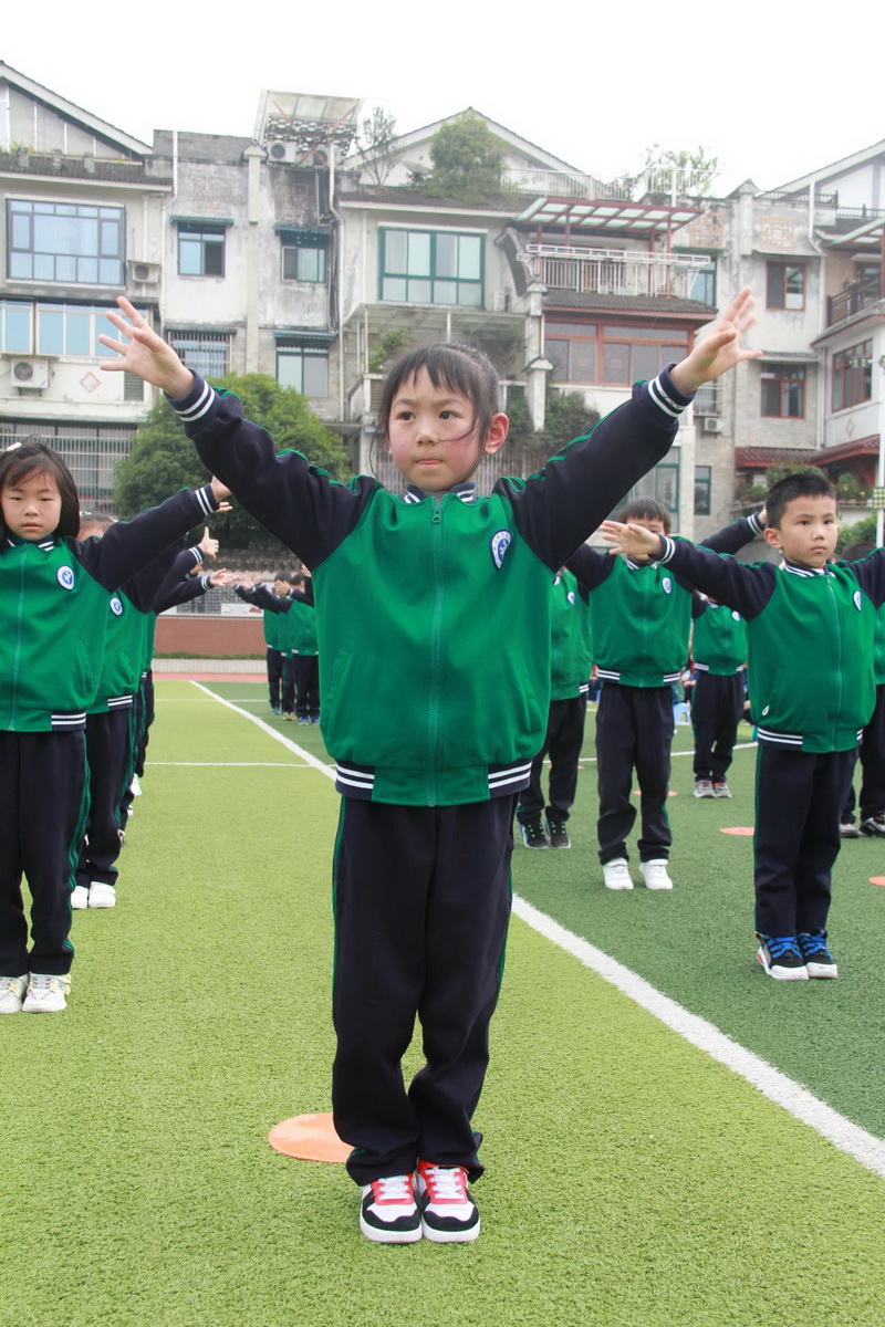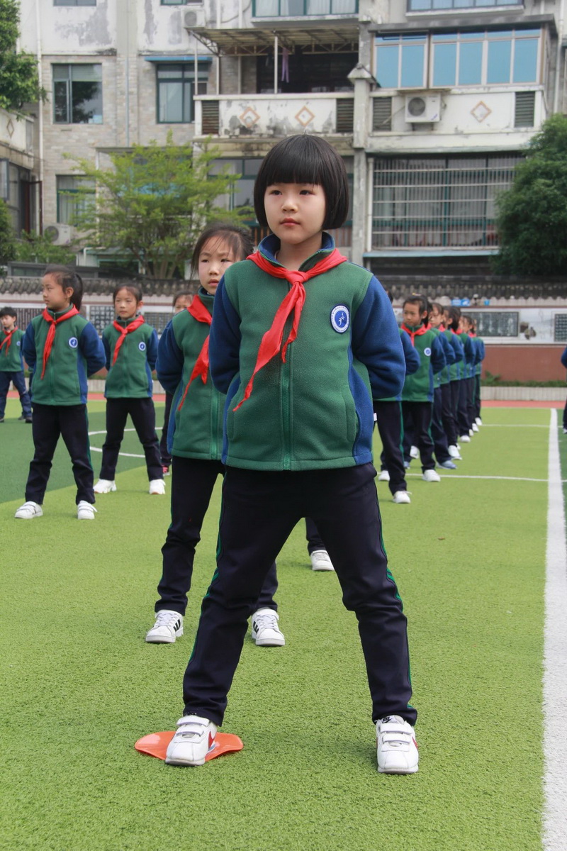 3、4年级为第二时间段,于4月13日下午进行,展示内容为队列队形展示、校园自编操—《少儿健美操》;