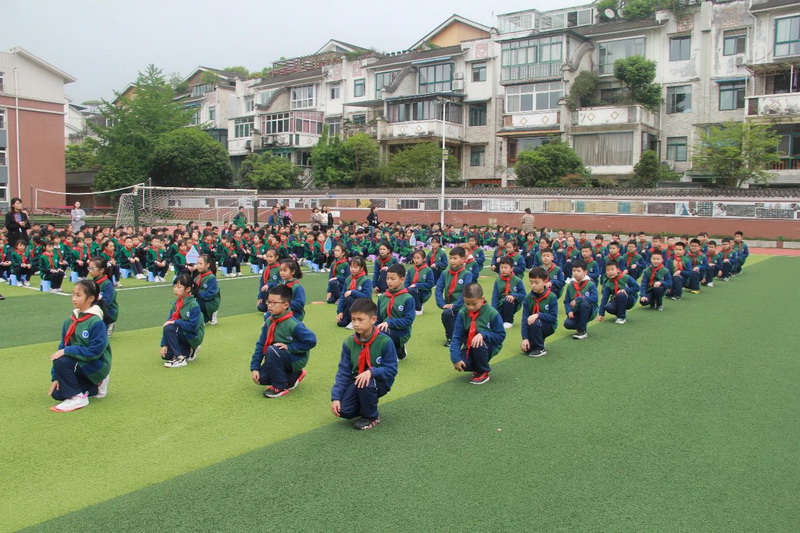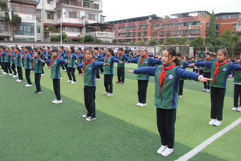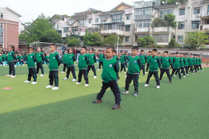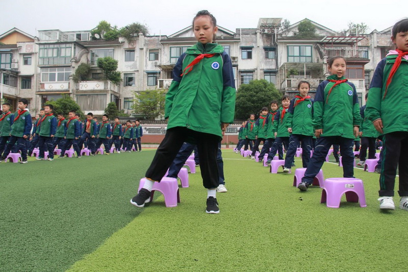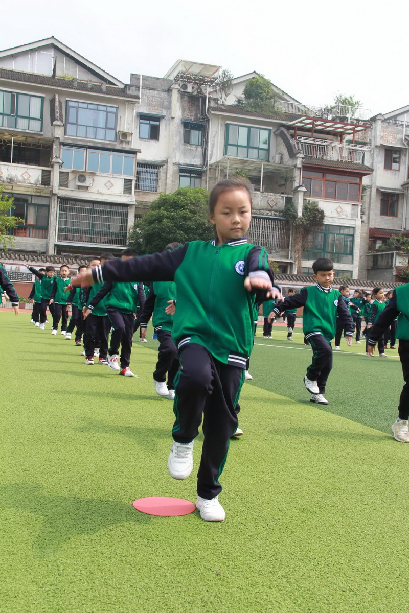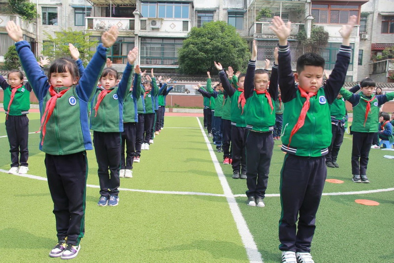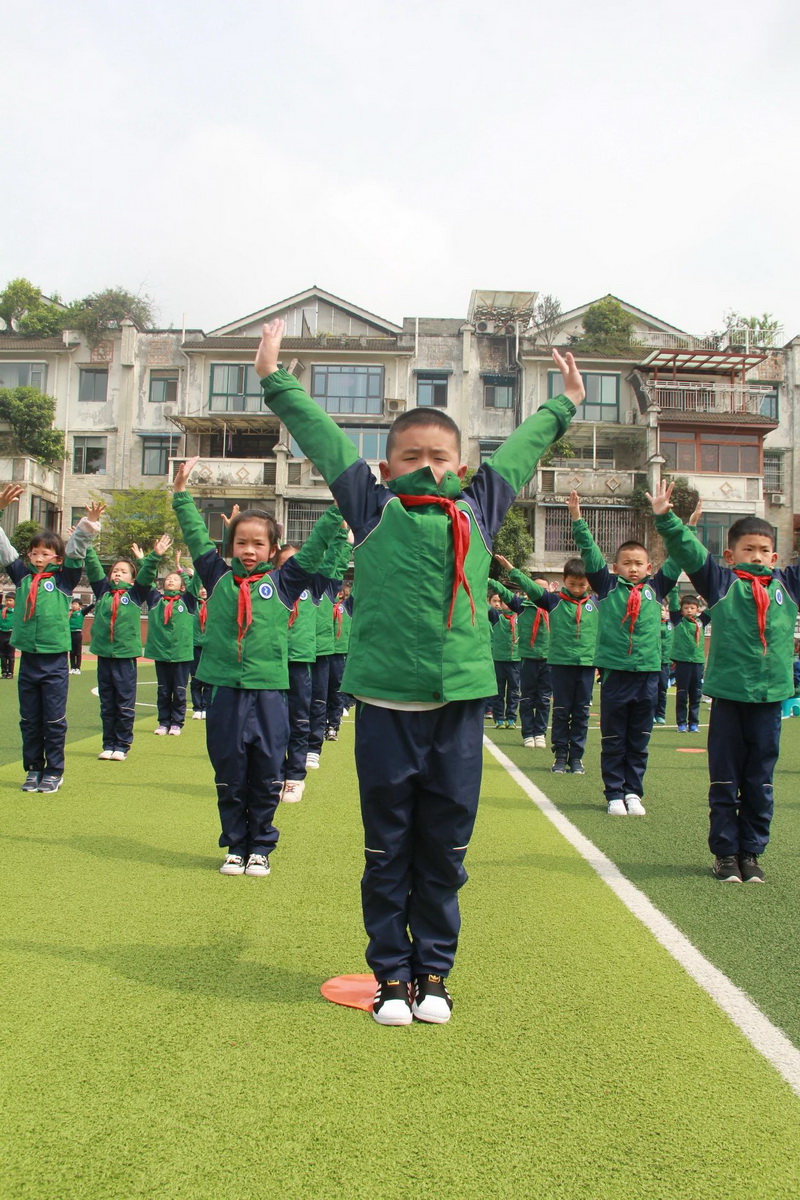 3、4年级为第二时间段,于4月13日下午进行,展示内容为队列队形展示、校园自编操—《少儿健美操》;