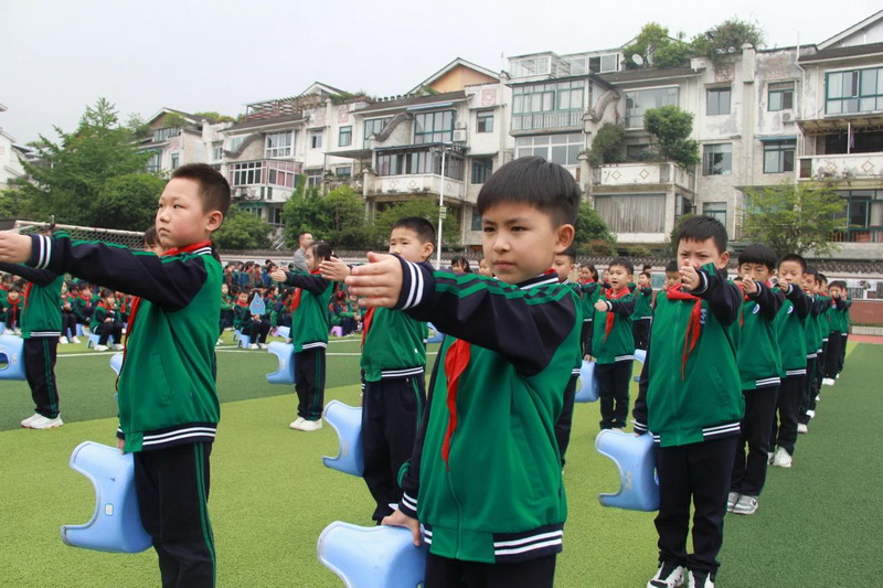 Grade 1 and Grade 2 were the first time period, which was held in the morning of April 13th. The contents of the show were formation display and the third set of broadcast gymnastics for primary school students, "Colorful Sunshine".
