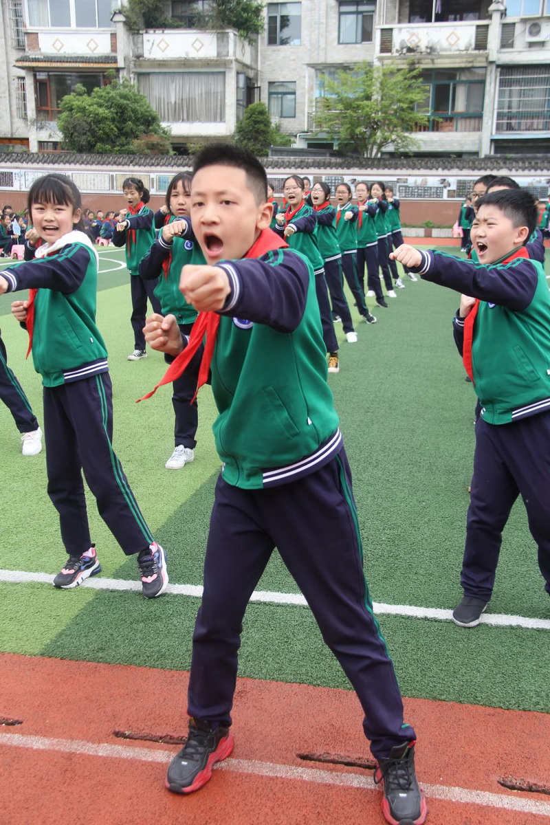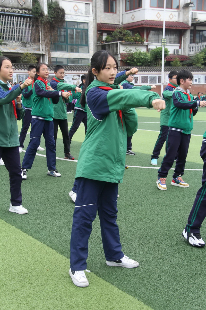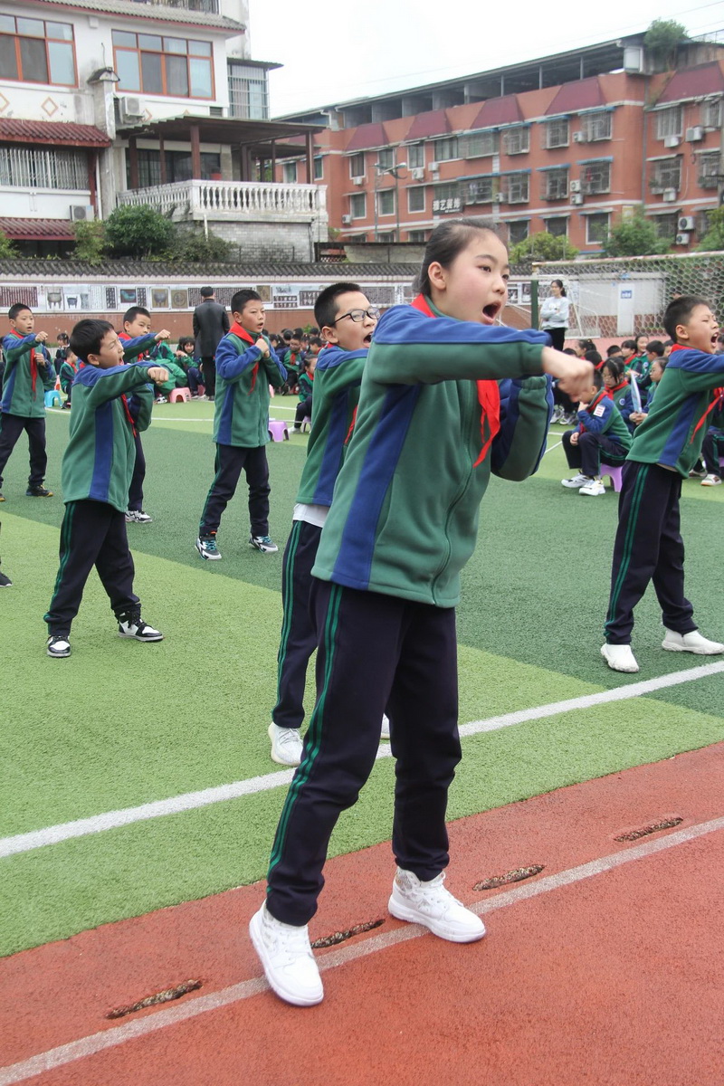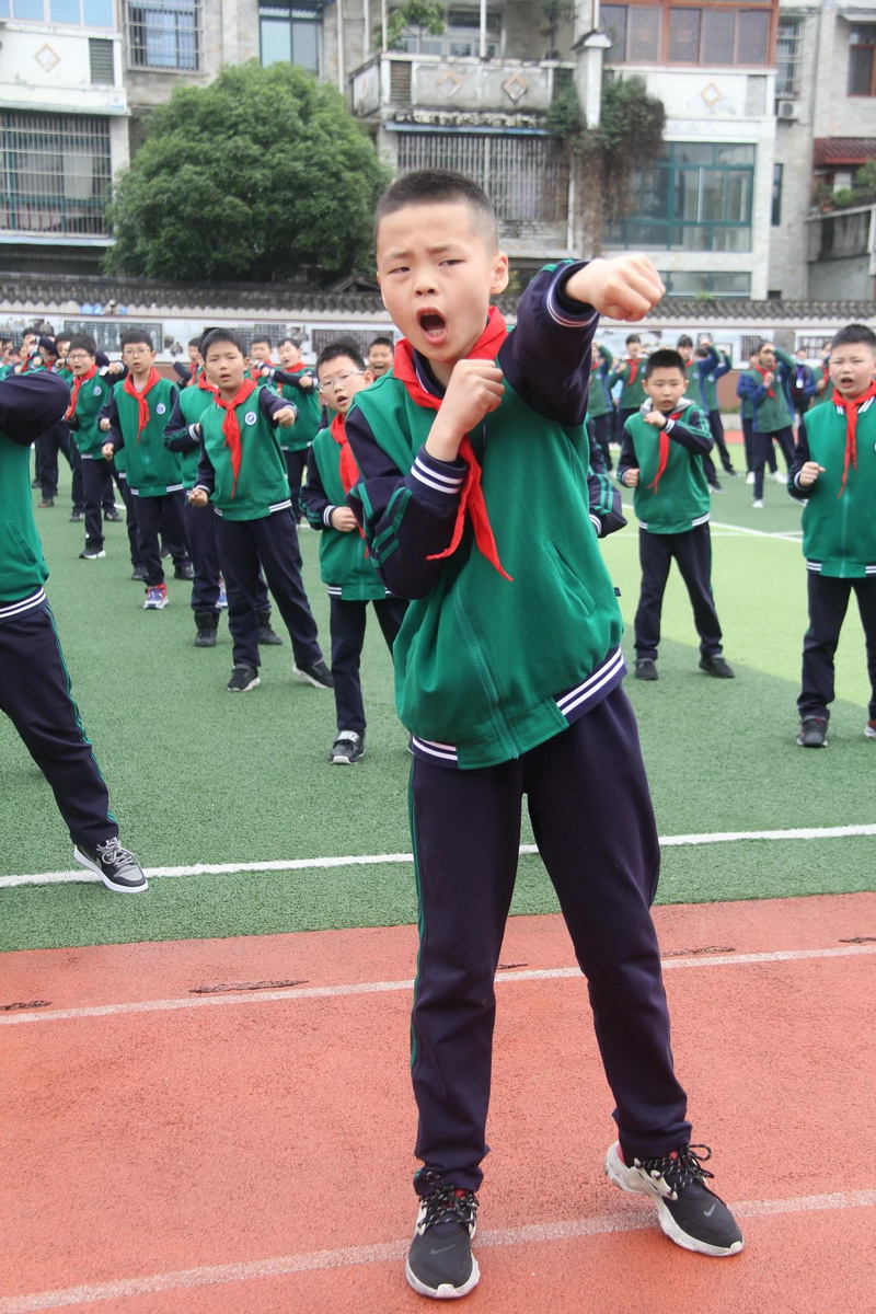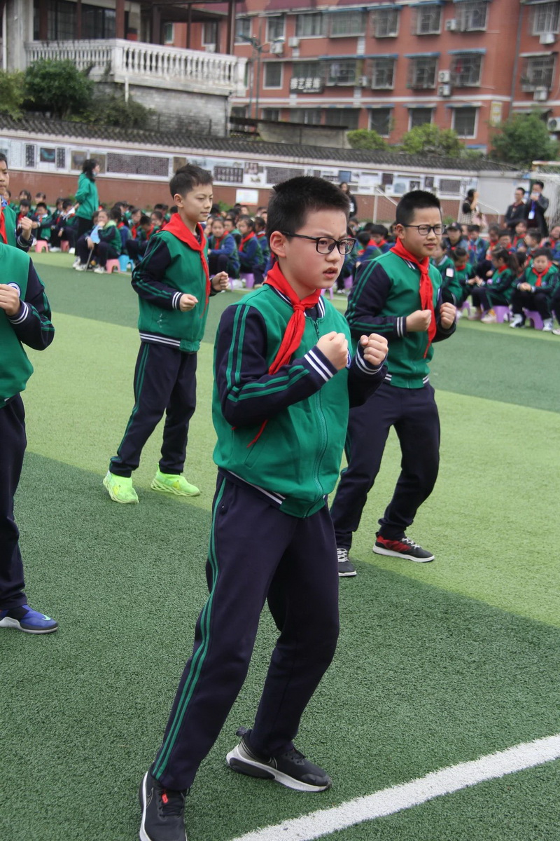 Grade 5 and Grade 6 were the third time period, which was held in the morning of April 14th. The content of the demonstration was formation demonstration and campus self-made exercise - "Junior Aerobic Kickboxing".