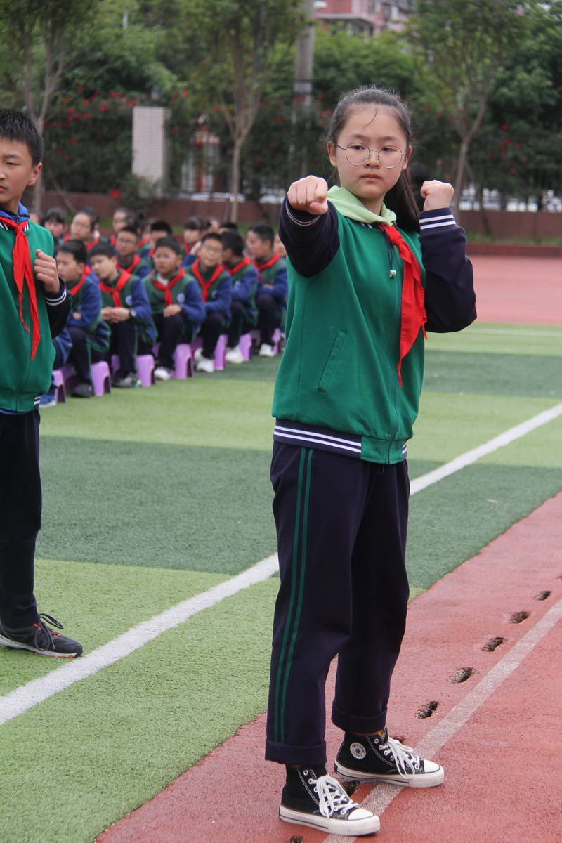 5、6年级为第三时间段,于4月14日上午进行,展示内容为队列队形展示、校园自编操—《少年有氧搏击操》。