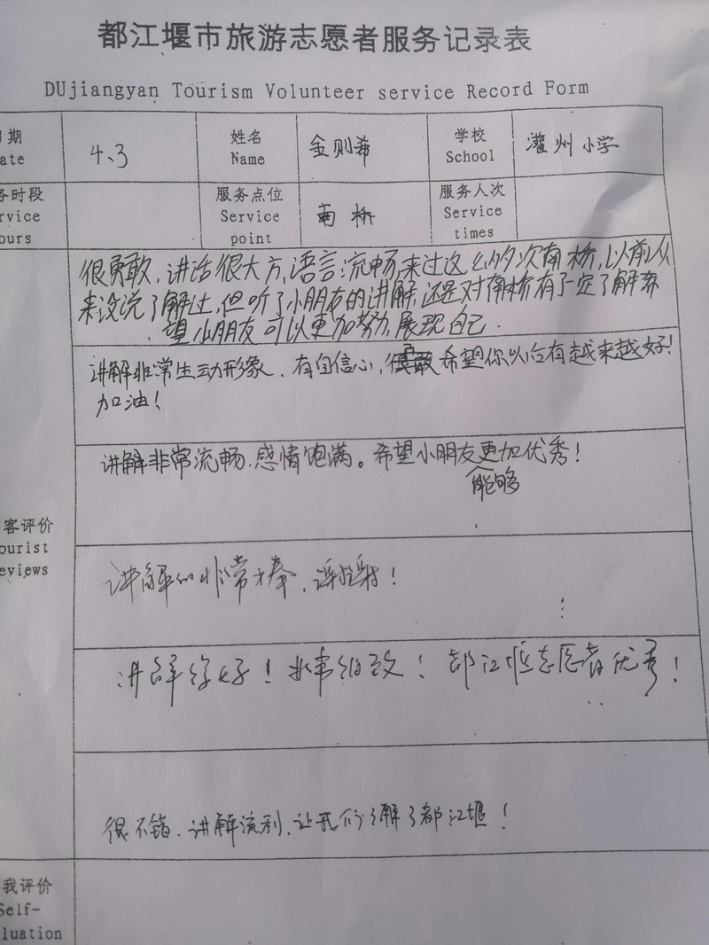 在调研期间,韩春丽对我校参与都江堰市“小橘子”旅游志愿服务整体工作给予了高度评价。