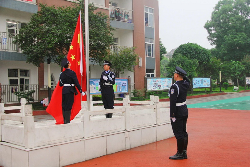 学校特邀特警队的警官进行隆重而庄严的升旗仪式,激发孩子们强烈的爱国情怀。The special police officers were invited to carry out a grand and solemn flag raising ceremony to stimulate the children's strong patriotic feelings.