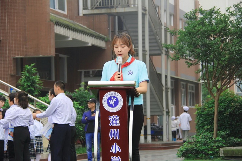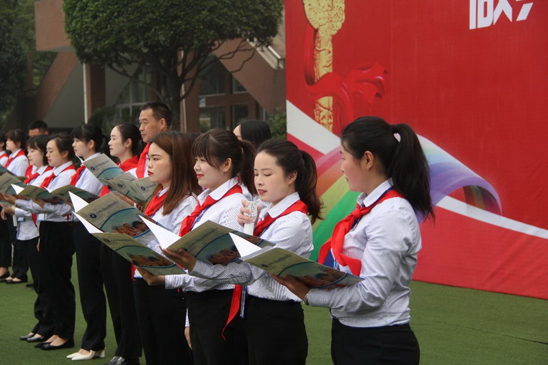 一年级全体教师诵读诗篇,灌注着身为人师、身为少先队员辅导员、身为祖国未来栋梁的引路者,诠释着真诚的爱与沉甸甸的责任。All the teachers of grade one read the poems, explaining sincere love and responsibility.
