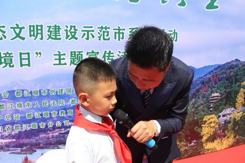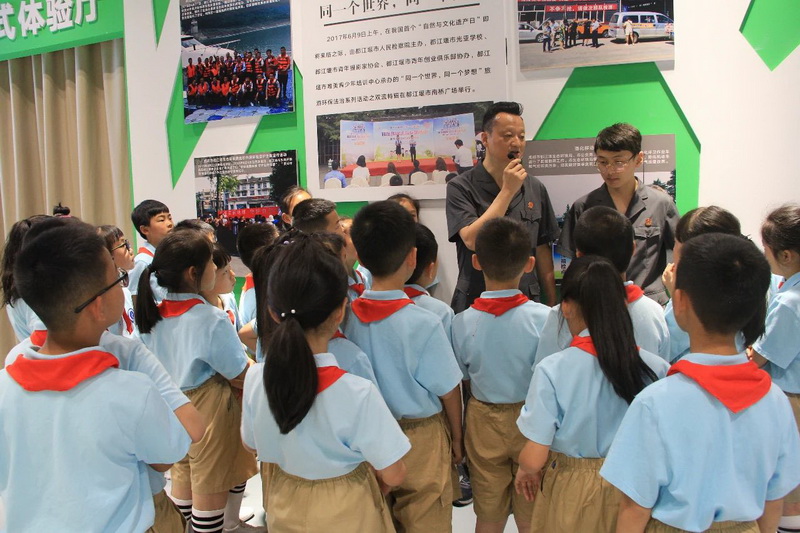 Led by Yin Li, thechief of the pollution prevention and control comprehensive section of ChengduDujiangyan Ecological Environment Bureau, the children from Guanzhou PrimarySchool visited the DujiangyanYanshuiqingqing publicity and warning basefor ecological and environmental protection, and carried out lectures on pandaclasses and illegal cases of environmental resources.