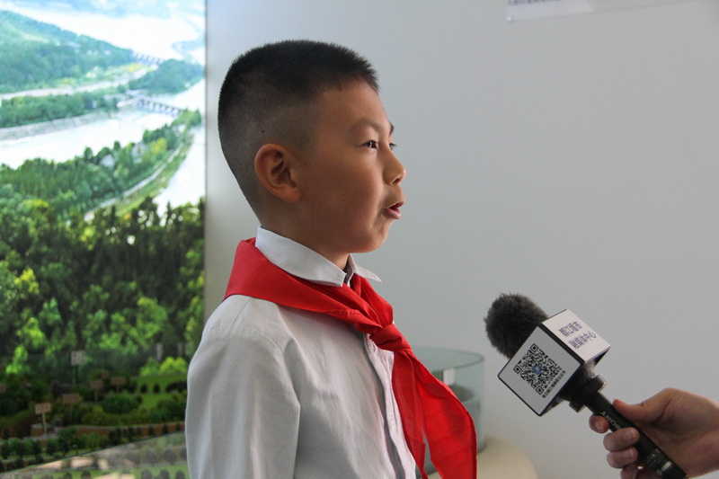 我校学生代表彭聿白接受采访,他说:“作为一名小学生,我们应该爱护环境,爱护森林和小动物。希望我们的城市变得天更蓝、山更绿、水更清,共同守护我们的家园。”