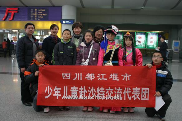 2月5日我校师生7人乘机抵达北京沙特驻华大使馆,与北京六名孩子一同前往沙特阿拉伯。2月10日沙特当地时间16:22,北京时间21:22,我校赴沙特交流代表团在沙特首都利雅得皇家空军机场受到胡锦涛主席和沙特国王接见,并合影留念。我校学生梁鑫益和赵若瑒(藏族)同学代表中国暨灾区儿童分别向胡锦涛主席和沙特国王献了鲜花。会见中,胡主席亲切同孩子们交谈,询问孩子们现在灾区学习生活情况。沙特国王还向孩子们赠送了礼物。2月15日,赴沙特交流代表团将在圆满完成此次参观交流访问活动后回国。