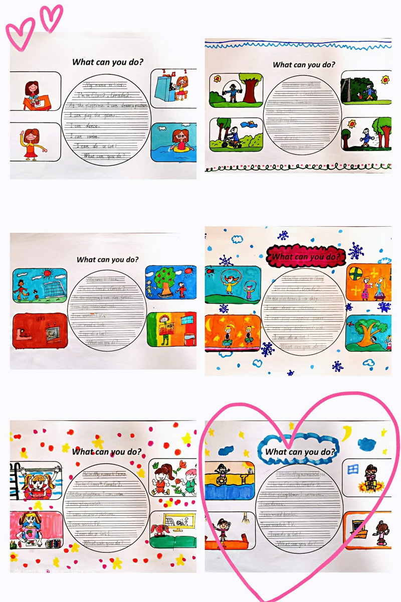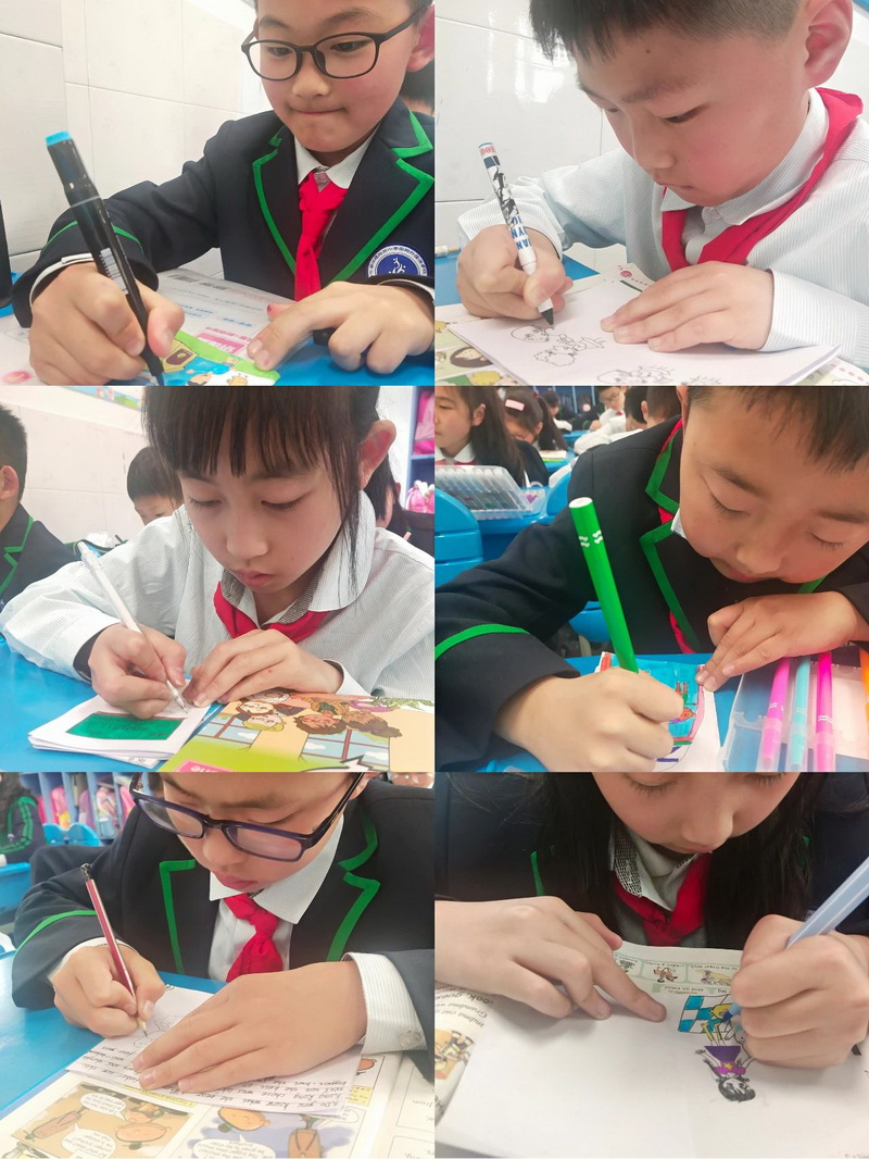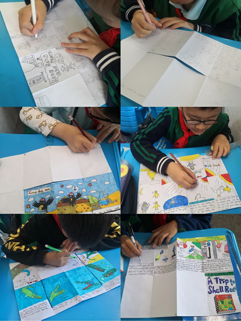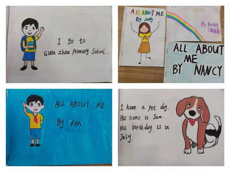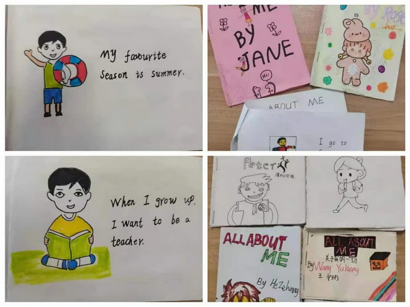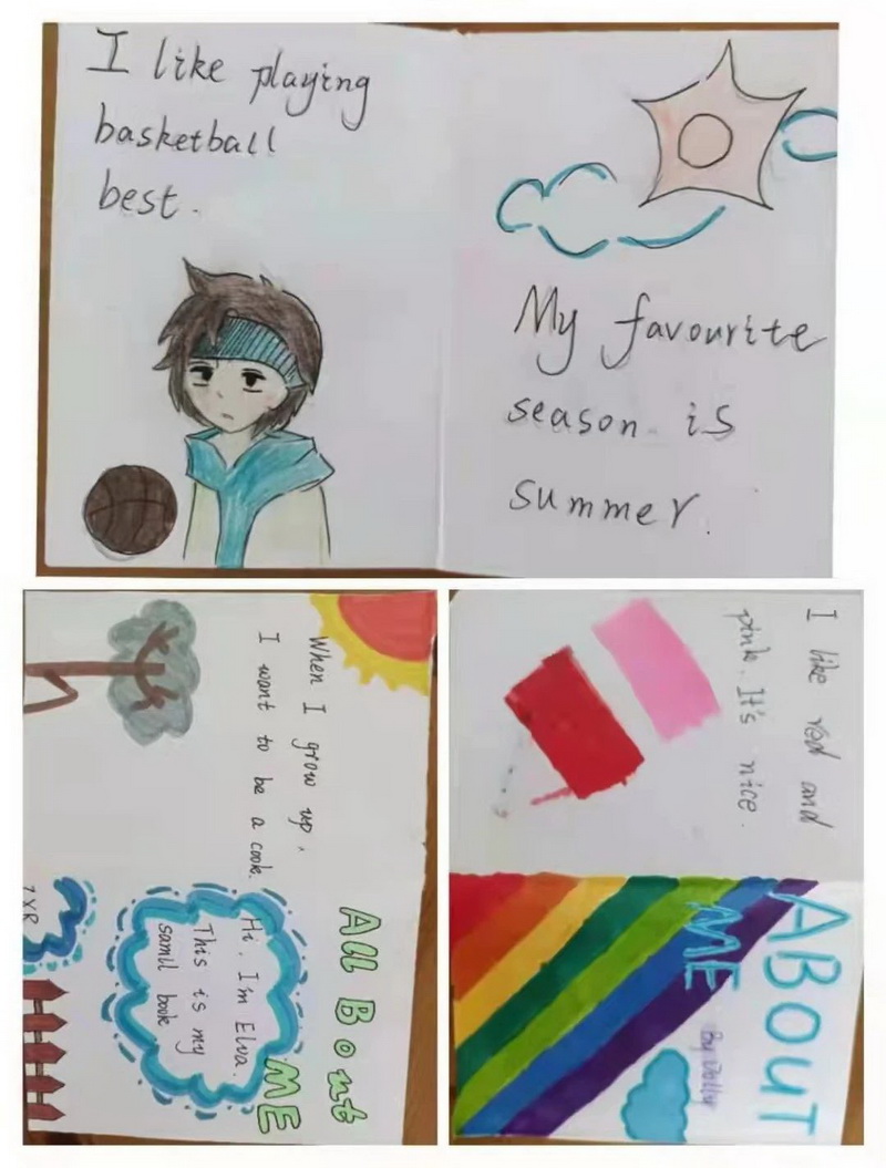 四年级的小朋友们根据自己的阅读兴趣,DIY了一册册构思独特、版面精美的英语小绘本。每一则绘本故事都有它的寓意。