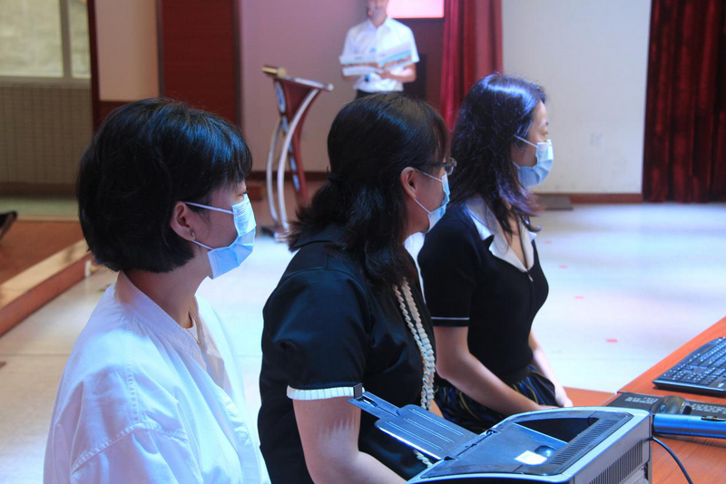 我校伍建强老师担任主持人,肖文老师担任操作员。主持人首先邀请家委会成员作为监督员上台就坐,公证电脑未联网,无任何额外硬件、软件,回收站内也无任何文件。