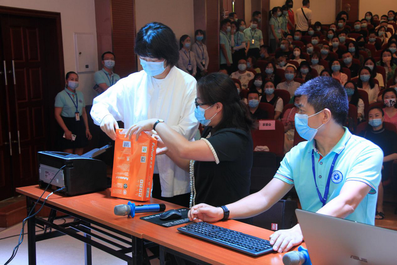 Members of the family committee randomly selected three parents of the 2027 freshmen to notarize on the stage. Parents first show that there is no interlayer, mechanism or props in the lottery box in advance, and open the brand-new table tennis. After confirming that there is no mark, number 1-6 will be assigned to the table tennis.