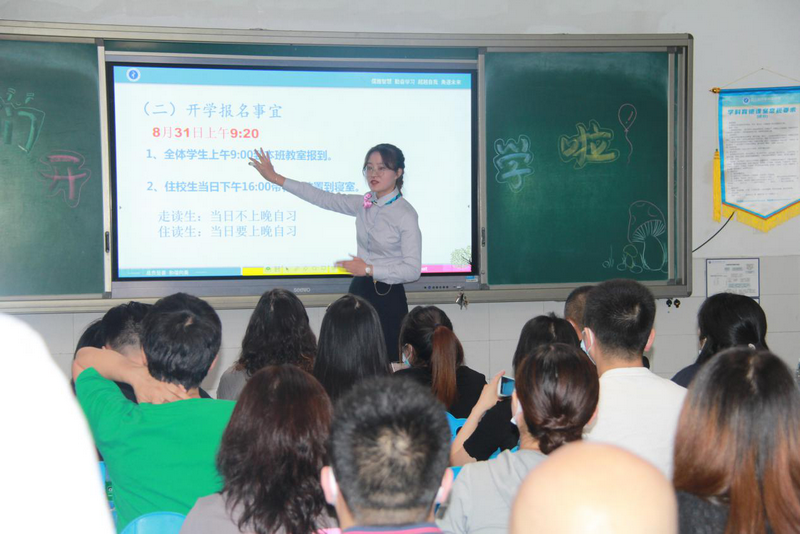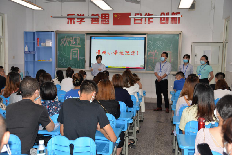 摇号分班结束后,各位家长前往本班教室,开展分班教师见面会。After the lottery, all parents went to the classroom to hold a meeting with teachers.