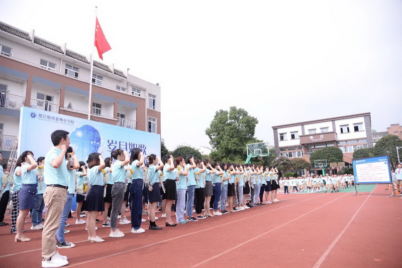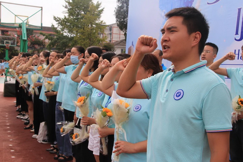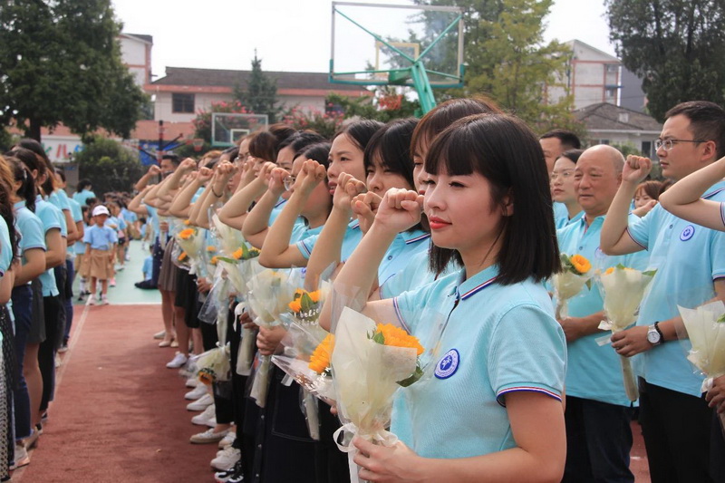 Principal Ma Changjunled all the faculty and staff to review the teacher declaration of GuanzhouPrimary School.