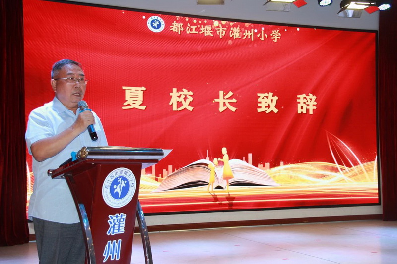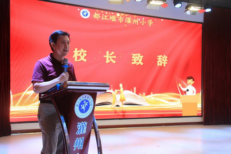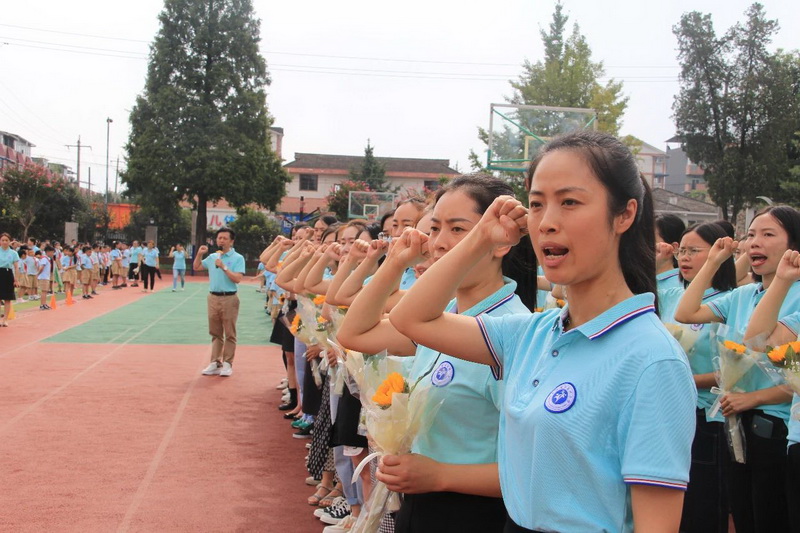 马长俊校长带领全体教职员工重温灌州小学教师宣言。