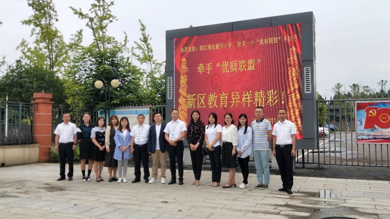为促进成眉互动,开启“优质联盟带动新区学校,构建共建共享、共生共荣”新格局,9月16日上午,在都江堰市灌州小学负责人马长俊校长的带领下,监控中心成员任红、郑爽、王君、邓兰及叶蓓老师一行六人来到眉山天府新区青龙街道第一小学,进行了首次“帮扶互动”之行。