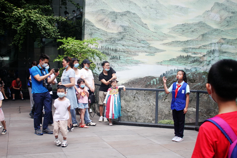 On October 1, 2021, duringthe national celebration, as volunteers, they went to Sichuan Science andTechnology Museum to explain water conservancy projects, participated in theactivity of "love hometown and culture" organized by Sichuan Scienceand Technology Museum, and experienced a trip of ancient Shu culture. Thepurpose of this participation is to let more people know and love Dujiangyan. During the activity, the response was enthusiastic. Small volunteers explainedDujiangyan water conservancy project, which attracted many tourists. Touristsactively asked questions and interacted frequently, and expressed that theymust come to Dujiangyan to see it on the spot.